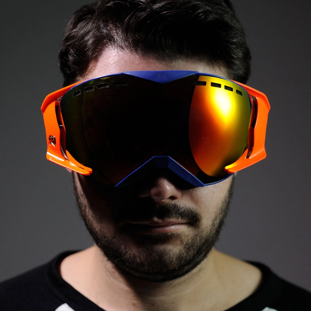 OCCHIALE MANTIS BLU, CHELE ARANCIO, LENTE MULTISTRATO ROSSA