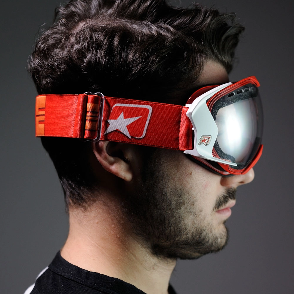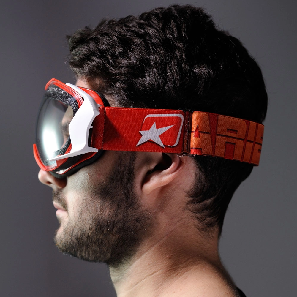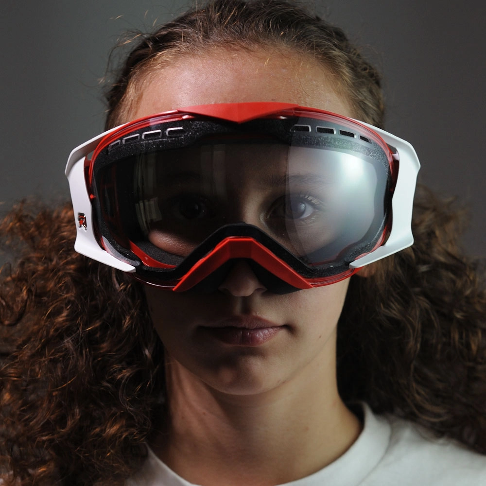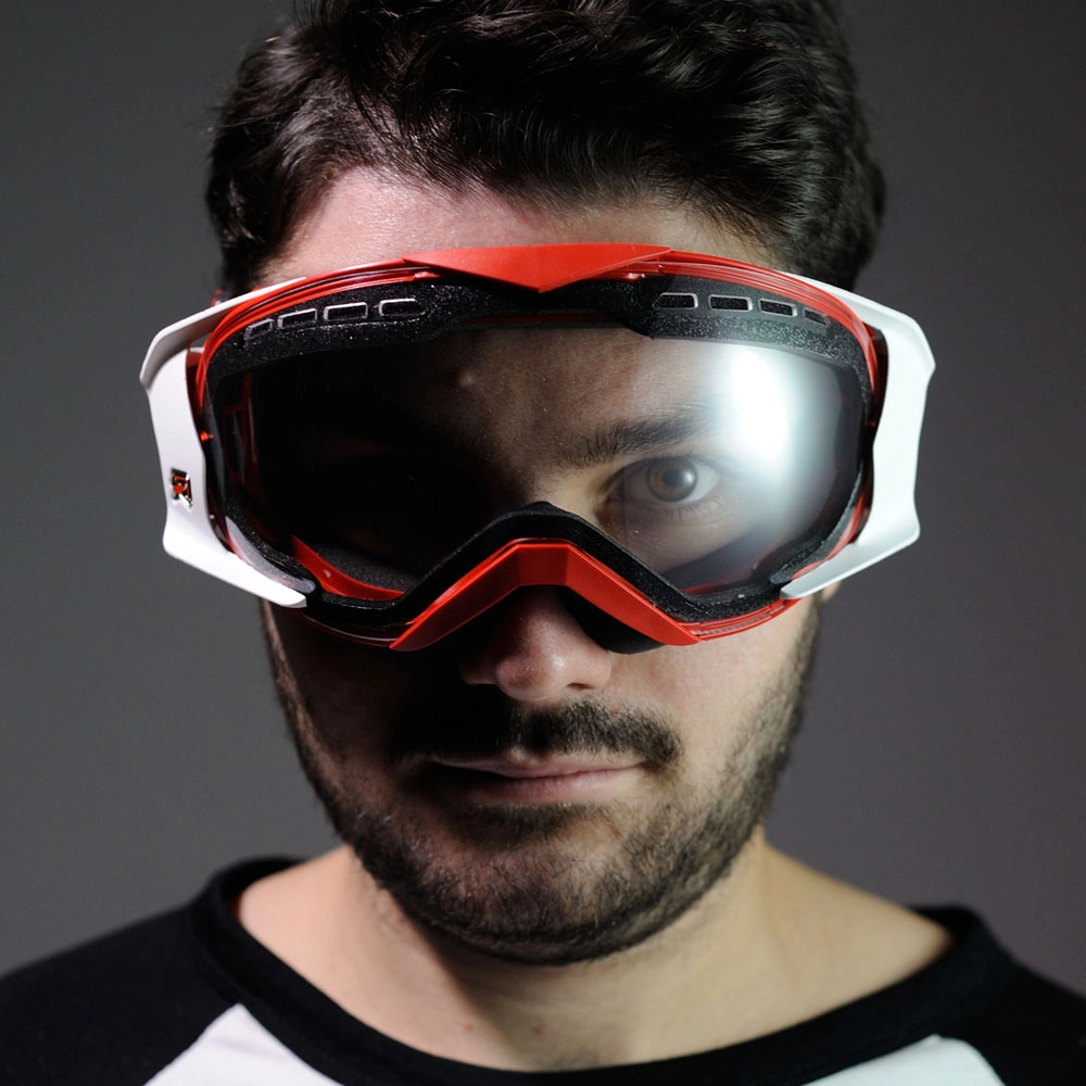OCCHIALE MANTIS ROSSO, CHELE BIANCHE, LENTE TRASPARENTE